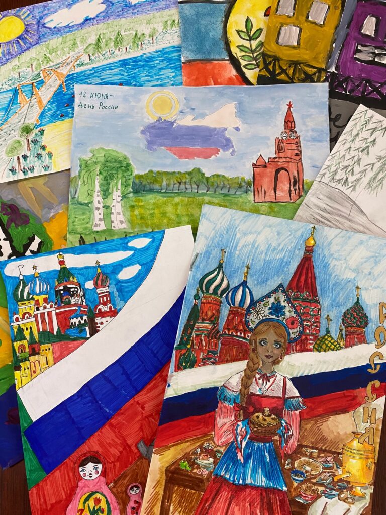 В преддверии праздника мы организовали для учащихся конкурс детского рисунка «Мы дети твои, Россия». Ребята творчески подошли к заданию, в своих рисунках через краски, передали образ родной земли, изобразили через рисунок, как они понимают, что означает этот праздник.